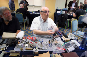 Como parte de organización, el pasado sábado tuve que llegar temprano a la sede del evento, disfrutando de los momentos iniciales de la feria. Los expositores van llegando de manera silenciosa, localizan su mesa y empieza el ritual de abrir maletas y empezar a disponer las piezas perfectamente repartidas por la mesa. Los organizadores se encargan de asistir a los expositores, proporcionándoles las identificaciones y ajustando las luces y la ventilación. Son cosas que no se aprecian cuando vas de comprador, pero desde luego implican un cierto esfuerzo y dedicación que quedan ocultados.