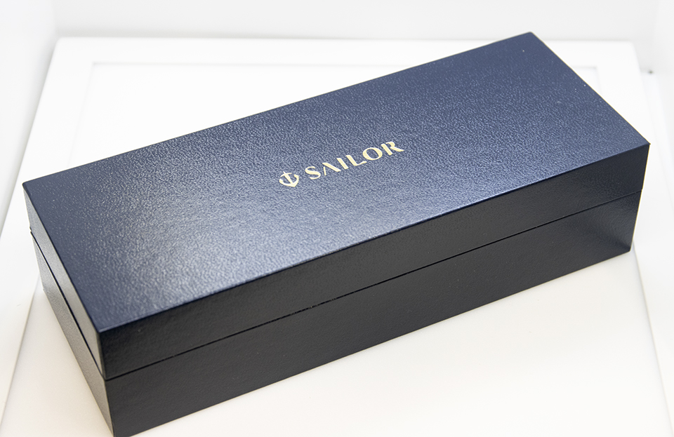 La estilografica viene en una caja, creada por artistas de Hida Takayama, prefectura de Gifu, una famosa zona de producción de productos de carpintería en Japón. El material utilizado es madera de castaño japonés. La funda de la estilografica , que sujeta la estilografica, está hecha de tela de cáñamo, que se vuelve más suave y más cómoda para el bolígrafo a medida que se usa, ganando un elegante brillo y blancura. La tela de cáñamo es un material sostenible que es resistente, absorbe la humedad y de secado rápido. Este es un material natural muy raro que es casi imposible de encontrar en circulación hoy en día llamado "el tejido que los japoneses han olvidado".